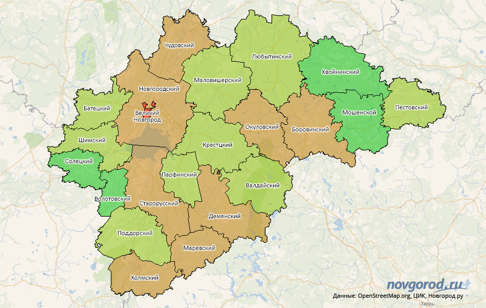 | Крестецкий район | 43.09% | 16.73% | 9.92% | 2.94% | 23.64% |